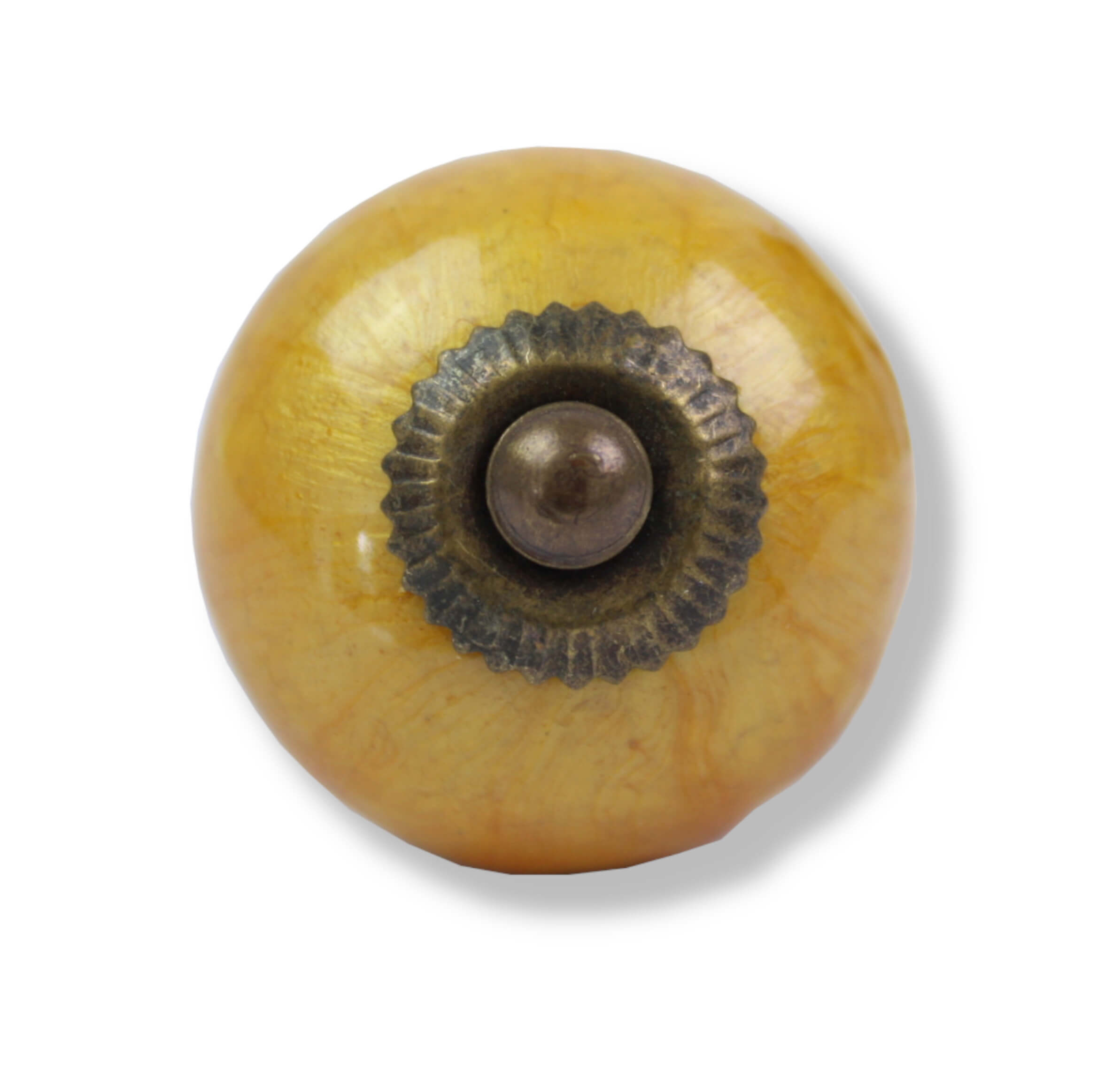Möblknauf aus Keramik in goldbrauner Nagellackoptik mit Messinggewinde.