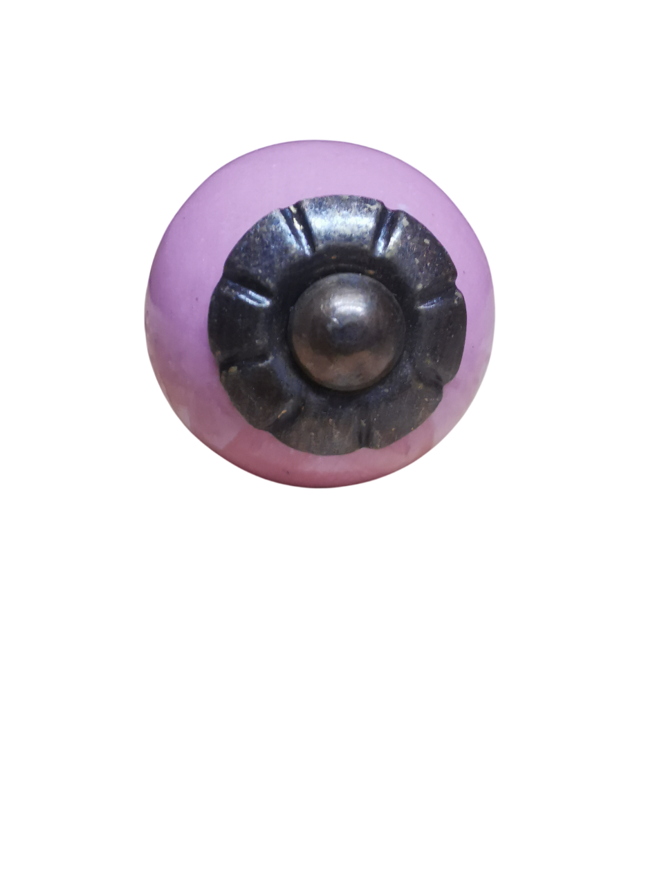 Kleiner einfarbiger Keramikknauf in Rose mit messingfarbiger Blütenrosette