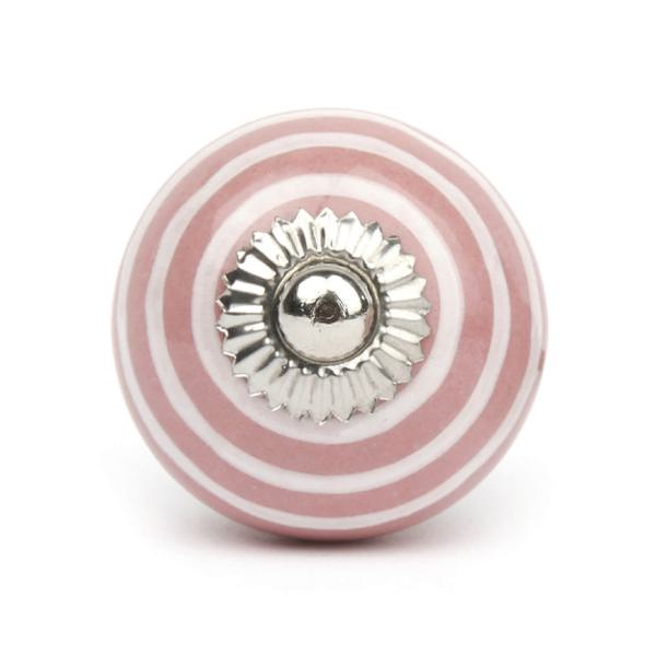 Rosa Möbelknauf mit weißen Streifen in groß.