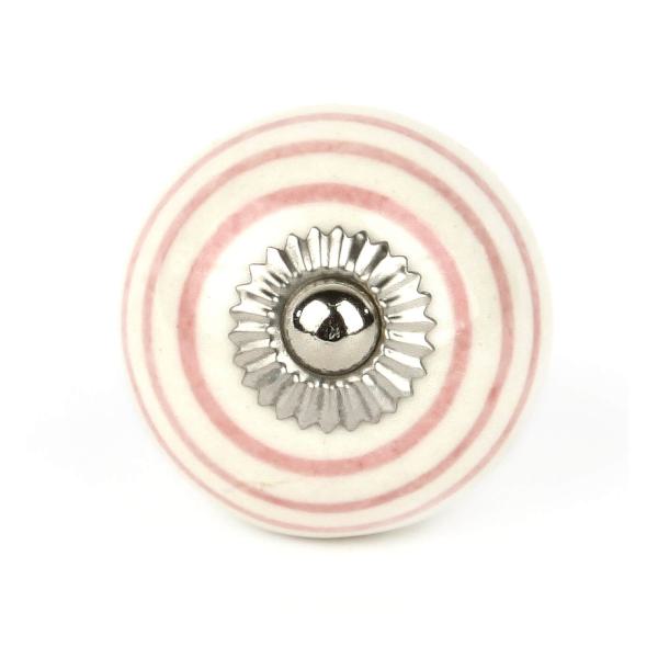 Kleiner weißer Möbelknauf mit handbemalten Streifen in rosa.