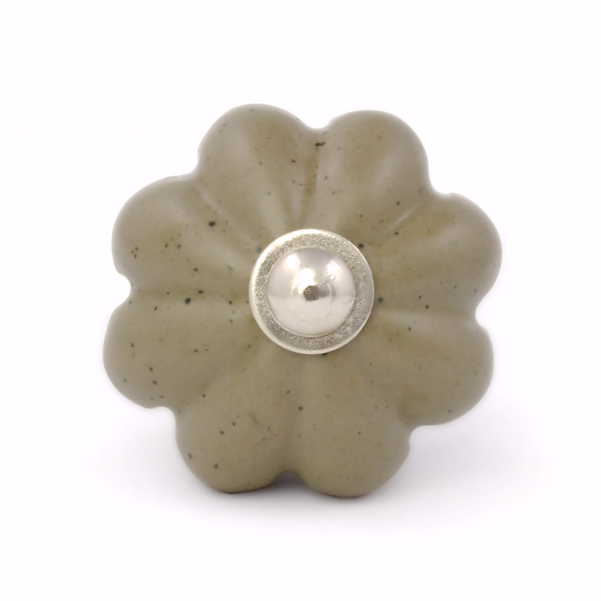 Kürbisknauf in olivgrauer glatter Steinoptik mit leichten Sprenkeln.